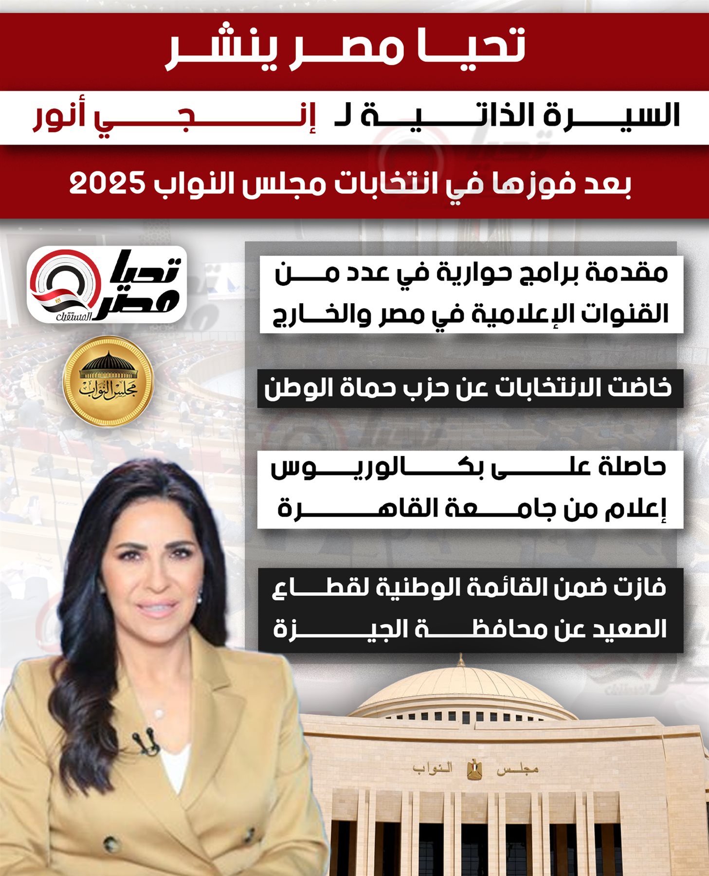 ينشر تحيا مصر السيرة الذاتية لـ إنجي أنور بعد فوزها في انتخابات مجلس النواب 2025.