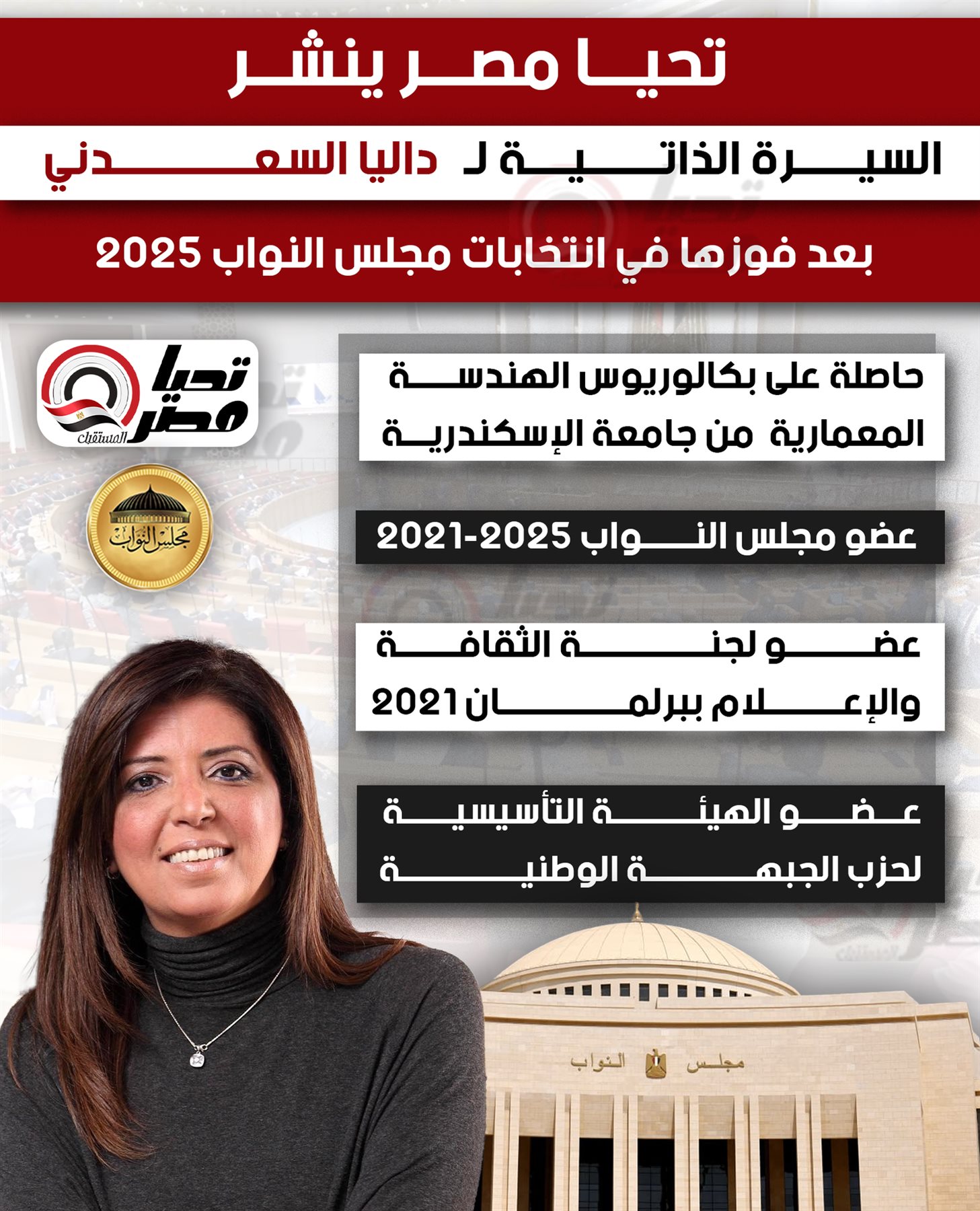 ينشر تحيا مصر السيرة الذاتية لـ داليا السعدني بعد فوزها في انتخابات مجلس النواب 2025.