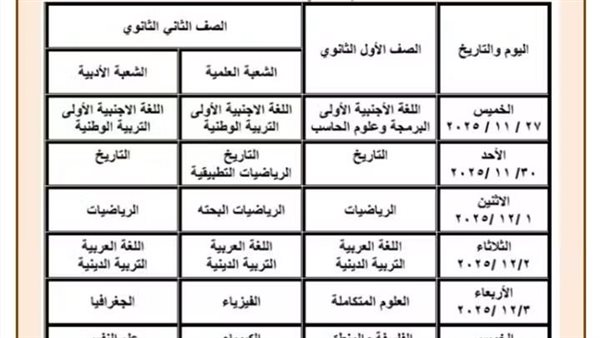وشملت جداول المرحلة الثانوية (الصفان الأول والثاني الثانوي العام)