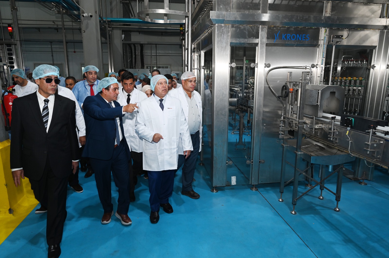 كما شملت الجولة زيارة مصنع بيورس للصناعات الغذائية والمشروبات والمياه، المقام على مساحة 12,480 متر مربع باستثمارات بلغت 575 مليون جنيه، وتصل طاقته الإنتاجية إلى 110 مليون لتر سنويًا من المشروبات الغازية، وتصل نسبة المكون المحلى الى 80%، وخلال الزيارة، تفقد الوزير منطقة تحضير المركزات، ومحطة معالجة المياه، وروبوت استقبال العبوات، ومخزن المنتج اليومي التام، بالإضافة إلى ماكينة تعبئة الكانز، ومراحل التعبئة والتغليف باستخدام الروبوت الآلي، وخط انتاج العبوات البلاستيكية وماكينة إعادة التشكيل للزجاجات، واطلع على سير عمليات التعبئة والتغليف الآلية.