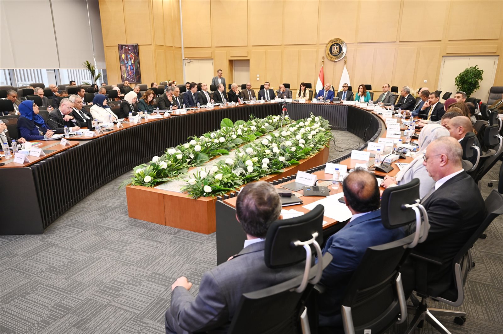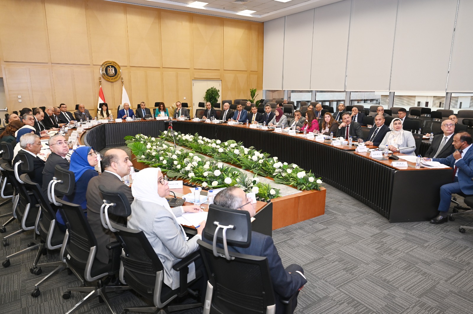 كما حضر الدكتور محمود عصمت وزير الكهرباء والطاقة المتجددة، والمهندس محمد شيمي وزير قطاع الأعمال العام، والدكتورة منال عوض وزيرة التنمية المحلية والقائم بأعمال وزير البيئة (وعبر تقنية الفيديو كونفرانس المهندس حسن الخطيب وزير الاستثمار والتجارة الخارجية والمهندس كريم بدوي وزير البترول والثروة المعدنية)، والمهندس شريف الشربيني وزير الإسكان والمرافق والمجتمعات العمرانية، والمهندس محمد السويدي، رئيس اتحاد الصناعات المصرية، والدكتورة/ ناهد يوسف رئيس الهيئة العامة للتنمية الصناعية، (ووليد جمال الدين رئيس الهيئة العامة للمنطقة الاقتصادية لقناة السويس، عبر تقنية الفيديو كونفرانس) فضلاً عن ممثلي الوزارات والهيئات أعضاء المجموعة الوزارية.
