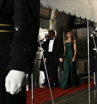 فستان ميلانيا ترامب، هو من تصميم مصصم الأزياء اللبناني الشهير إيلي صعب، وكان الفستان طويلًا حتى الأرض بلون أخضر زمردي، ونسّقت إطلالتها مع حذاء بكعب عالٍ بلون متناسق.