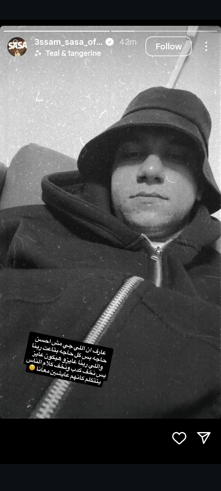 وشارك عصام صاصا صورة جديد له على حسابه الرسمي بموقع تبادل الصور والفيديوهات انستجرام، عبر خاصية ستوري، ظهر بها وعليه علامات الحزن الشديد، وعلق عليها فقا لما رصده موقع تحيا مصر: "عارف إن اللي جاي مش أحسن حاجة، بس كل حاجة بتاعت ربنا واللي ربنا عايزه هيكون عايز… بس نخف كدب ونخف كلام، الناس بتتكلم كأنهم عايشين معانا".
