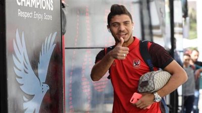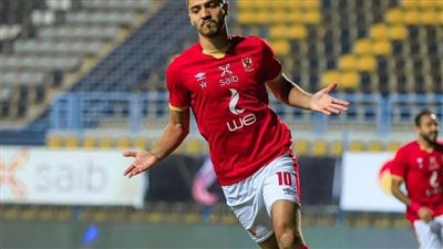 يحتفل اليوم الدولي محمد شريف مهاجم منتخب مصر الأول لكرة القدم والنادي الأهلي