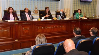 نبيلة مكرم بالشيوخ للرد على طلب النائب محمود القط حول قانون الهجرة