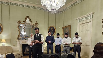 نشر رئيس وزراء اسكتلندا حمزة يوسف تغريدة له عبر صفحته الرسمة علي تويتر صورة وهو يصلي فى يومه الأول بمقر إقامته الرسمي بعد فوزه فى الانتخابات.
