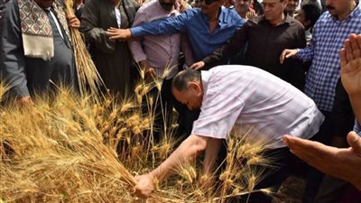 محافظ أسيوط يشارك بحصاد القمح مع المزارعين أثناء جولته التفقدية