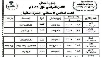 التفاصيل الكاملة لجدول امتحانات الفصل الدراسي الأول 2026 بالقاهرة بعد اعتماده رسميًا، ومواعيد امتحانات الابتدائي والإعدادي والثانوي وأيام الإجازات.