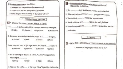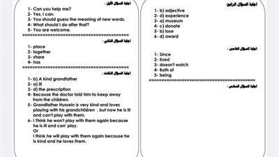أسئلة وإجابات امتحان اللغة الإنجليزية للصف الثالث الإعدادي 2024 الذى يؤديه الطلاب اليوم الأربعاء 24 يناير 2024