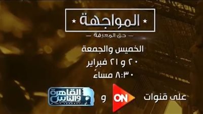 تعرض قناتي on و القاهرة والناس ، يومي الخميس والجمعة 20 و 21 فبراير الجاري، أكبر حوار صحفي تلفزيوني عن مستقبل السياحة المصرية في حلقة برعاية مجلس الوزراء، وهي الحلقة التي تم تصويرها من قلب المتحف الكبير قبل الإفتتاح العالمي المرتقب وتأتي بعنوان المواجهة حق المعرفة ، حيث يطرح الكاتب الصحفي الكبير مصطفى النجار العديد من الأسئلة، وهي هل مصر قادرة على إستقبال 30 مليون سائح في عام 2030 ؟ وما هي الح