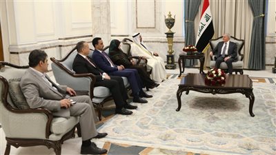 رئيس الجمهورية العراقية الدكتور عبد اللطيف جمال رشيد بستقبل في قصر بغداد، رئيس البرلمان العربي عادل بن عبد الرحمن العسومي.