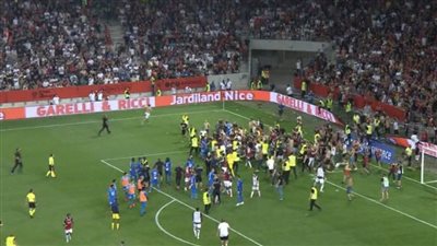 توقفت أحداث مباراة تيس الفرنسي وأوليمبيك مارسيليا في الدقيقة الرابعة والسبعون من عمر اللقاء بعد تدخل العديد