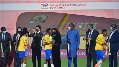 وزير الرياضة ورئيس الكاف يشهدان تتويج سيدات صن داونزبدوري أبطال أفريقيا
