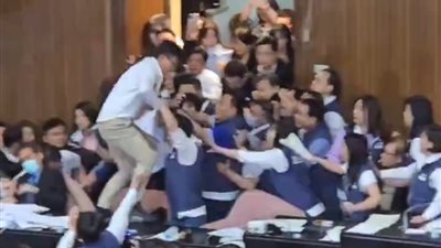 انتشر مقطع فيديو بشكل واسع يظهر تدافع النواب التايوانيون واشتبكوا بالأيدي ويأتي ذلك قبل ساعات فقط من تولي الرئيس المنتخب لاي تشينغ تي منصبه