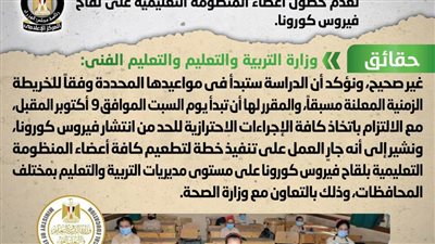 الحكومة تنفي تأجيل الدراسة لعدم حصول المنظومة علي لقاح كورونا