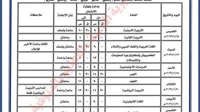 ارتفعت معدلات البحث عبر محركات شبكة جوجل العنكبوتية حول جدول امتحانات الشهادة الإعدادية في المنوفية يبدأ 15 يناير