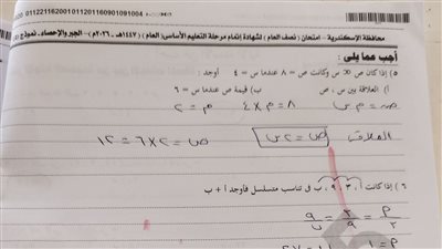 إجابات امتحان الجبر للشهادة الإعدادية 2026 الإسكندرية اليوم كاملة