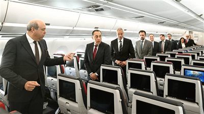 خلال فعاليات الاحتفال بانضمام أول طائرة من طراز Airbus A350-900 إلى أسطول الناقل الوطني، تفقد الدكتور مصطفى مدبولي، رئيس مجلس الوزراء، ومرافقوه، الطائرة الجديدة منAirbus ، التى تأتي ضمن صفقة أبرمتها شركة مصر للطيران مع شركة Airbus لضم 16 طائرة من طراز A350-900 للأسطول الوطني.