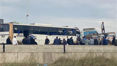 ارتفاع أعداد المصابين في حادث تصادم أتوبيس طلاب بسيارة نقل لـ 17 طالباً بالدقهلية