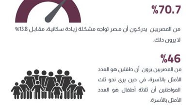 قال مركز المعلومات ودعم اتخاذ القرار بمجلس الوزاء إن قرابة 14 % من المصريين لا يرون مشكلة في الزيادة السكانية