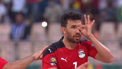 سجلمحمود تريزيجه ثانيأهداف الفراعنة في المباراة لصالح منتخب بلاده في الدقيقة الـ 100 من عمر المباراة في لق
