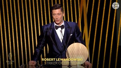 توج البولندي روبيرت ليفاندوفيسكي بجائزة أفضل مهاجم في عام 2021 بعد موسم قوي