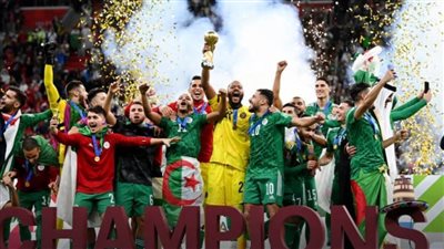 توج منتخب الجزائر ببطولة كأس العرب للمرة الأولى بتاريخه بعد الفوز على تونس في اللقاء النهائي بنتيجة 2/0 بستاد البيت بمدينة الخور.