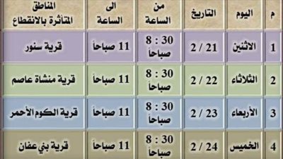 أعلنت إدارة الكهرباء بمحافظة بني سويف عن تنفيذ انقطاع مبرمج للتيار الكهربائي في عدد من القرى بمركزي إهناسيا وبني سويف.
