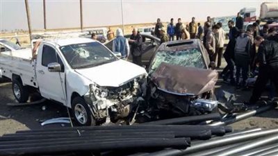 حادث تصادم وقع بين سيارتين بطريق مصر إسكندرية نتج عنه إصابة 7 أشخاص وتم نقلهم لمستشفى النوبارية العام بالبحيرة