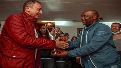 عقد موسيماني المدير الفني للأهلي جلسة سريعة مع الجنوب إفريقي بيرسي تاو وعمرو السولية لاعبي الفريق وذلك ع