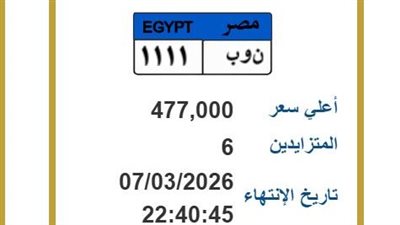 مزايدة نارية على لوحة سيارة مميزة بسعر وصل 650 ألف جنيه