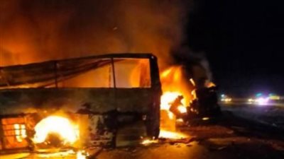 مصرع 14 شخصا وإصابة 4 بحادث تصادم أتوبيس ركاب مع سيارة نقل بأسيوط