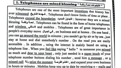 اسئلة واجابات اختبار من متعدد فى امتحان اللغة الإنجليزية للثانوية العامة غدا الخميس للشعبتين العلمى والأدبي