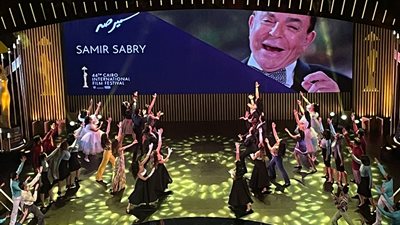 حسين فهمي يفتتح ريد كاربت مهرجان القاهرة السينمائي وزوجته تلتزم بالدريس كود