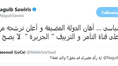 علق المهندس نجيب ساويرس، رجل الأعمال ومؤسس حزب المصريين الأحرار، على ترشيح أحمد شفيق نفسه لرئاسة الجمهورية من الخارج وعودته للإعلان عن منعه من السفر عبر قناة "الجزيرة القطرية"، ووصف ما حدث بأنه "غباء ...