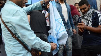 نظم عدد من الشباب ، وقفة احتجاجية امام نقابة الصحفيين، اعتراضاً على قيام قوات جيش الاحتلال الصهيونى بأقتحام المسجد الاقصى صباح اليوم الاربعاء. وقام المشاركون فى الوقفة، بحرق العلم الاسرائيلى ومسح ...