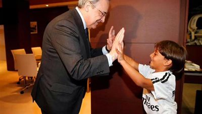 بالصور..رئيس نادي ريال مدريد يستقبل الطفل السوري الذي عرقلته المذيعة المجرية