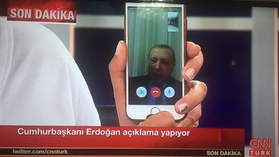تحدث الرئيس التركي "رجب طيب اردوغان" لاحدي القنوات التركية الخاصة، عبر تطبيق هاتفي بعد سيطرة الجيش علي التلفزيون الرسمي، رافضا ما حدث من الجيش التركي، مؤكدا انه الرئيس الشرعي للبلاد، وانه سيحارب ...